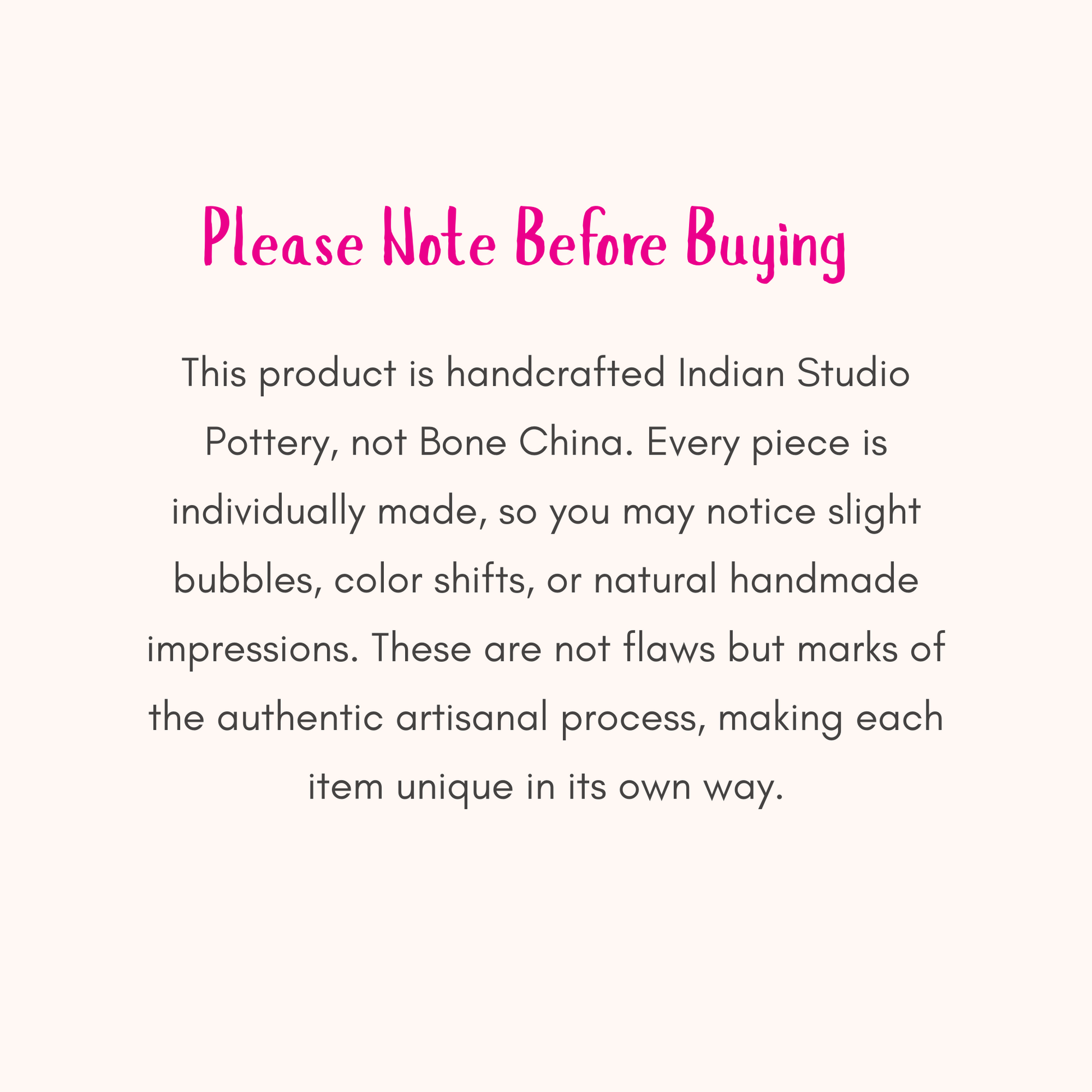 Every product is purely handmade, shaped patiently and finished with care. This process ensures uniqueness, warmth, and a personal feel in every piece.